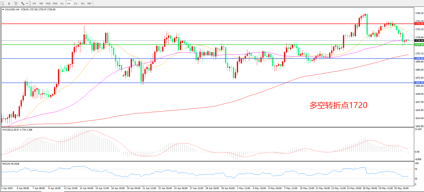 多空转折点:1720.00