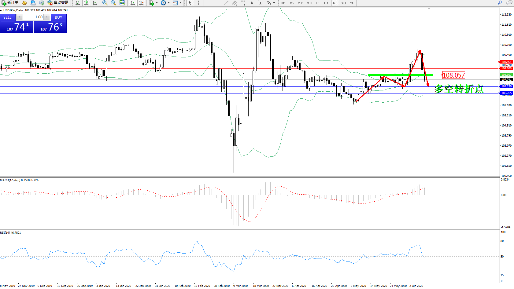 多空转折点:108.057