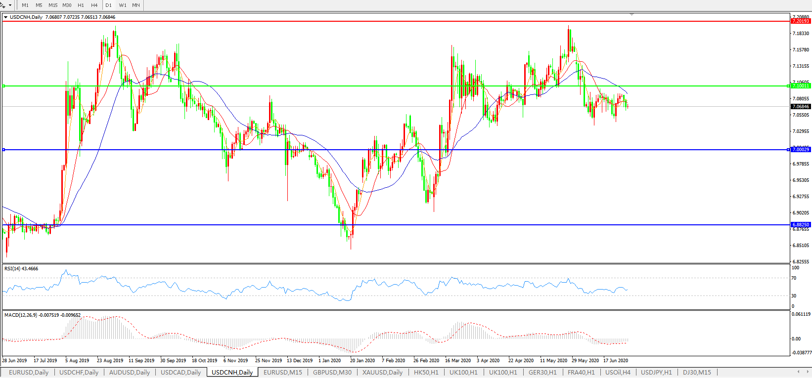 交易策略: 在7.1000之下,看跌,目标价位为7.0000,然后为6.8820。