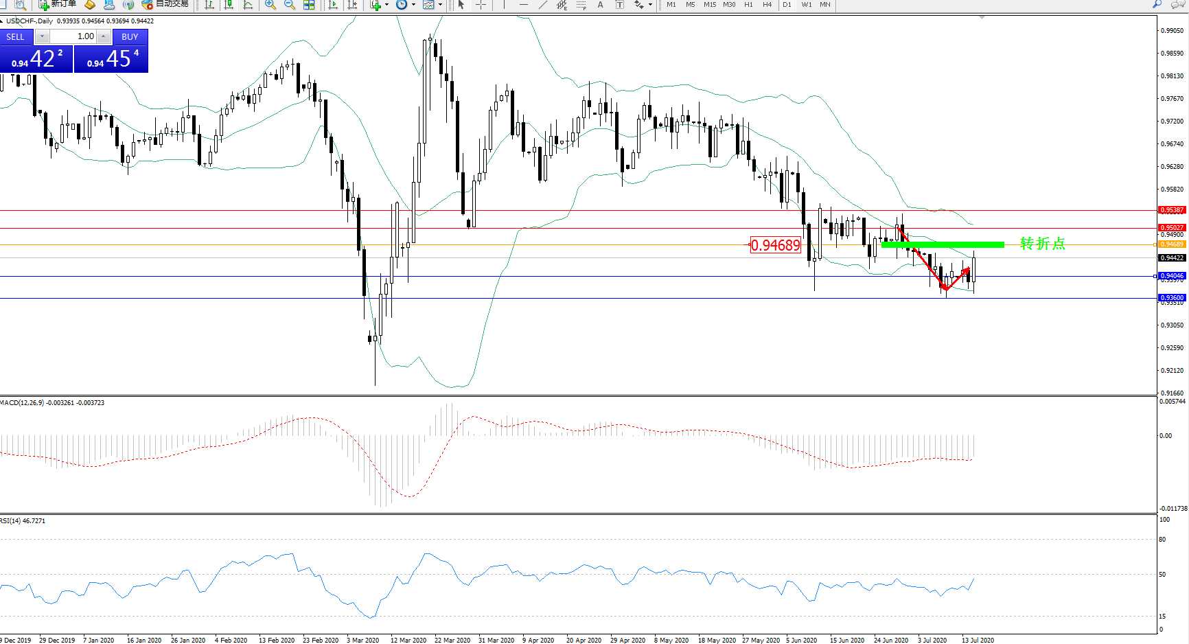 交易策略:0.94689下方看跌,目标0.94046、0.93600