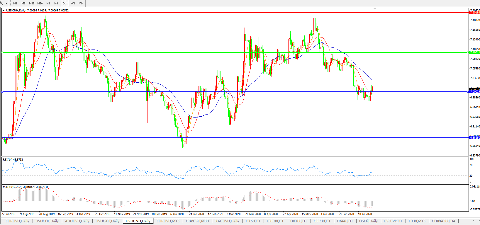 备选策略: 在7.1000之上,看涨,目标价位为7.2000,然后为7.3000。