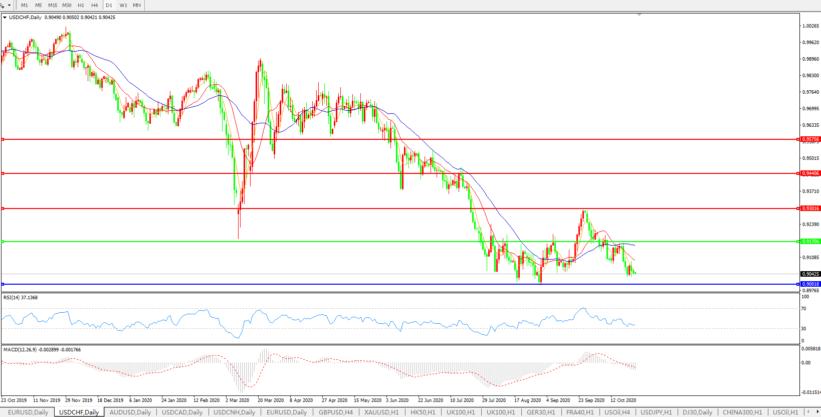 美元兑瑞郎USDCHF 日线图: