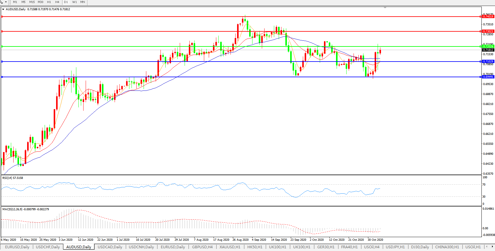 备选策略:0.7200上方看涨,目标0.7300、0.7400