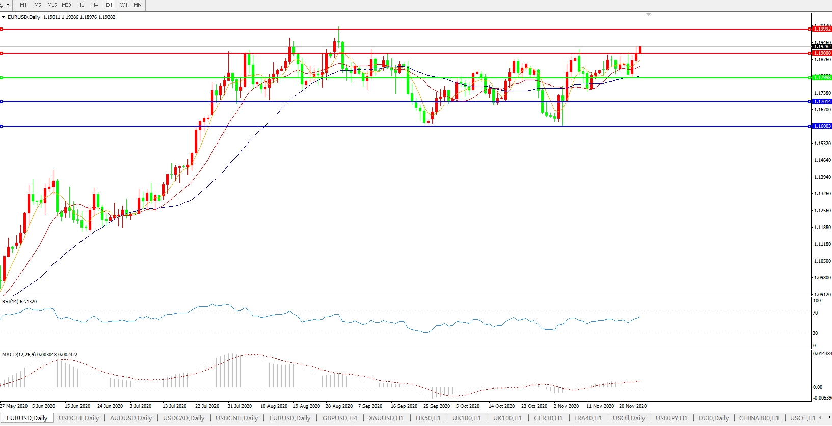 欧元兑美元EURUSD   日线图: