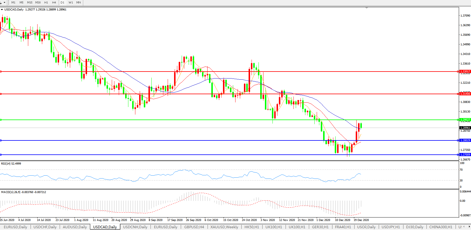 美元兑加元USDCAD 日线图: