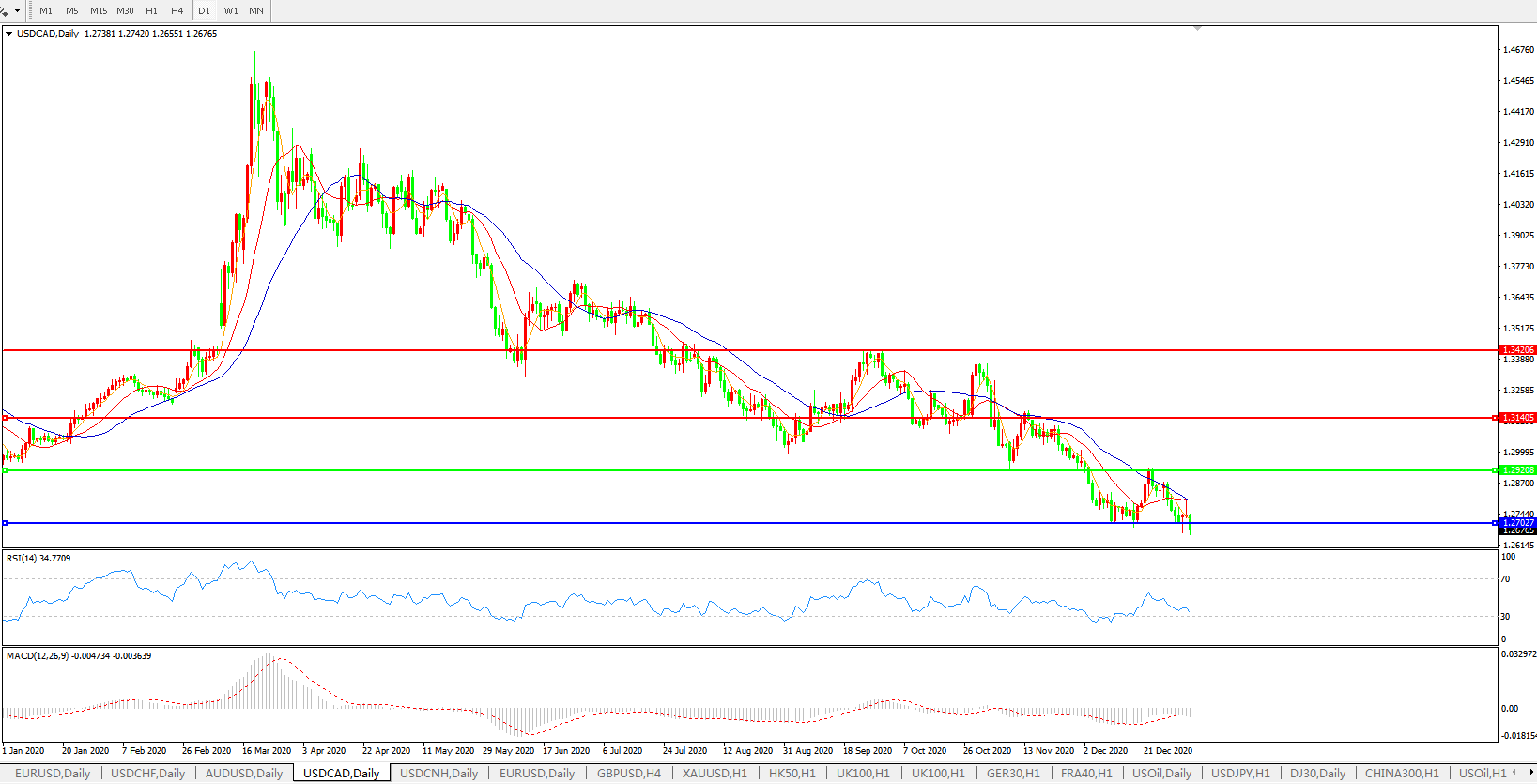 美元兑加元USDCAD 日线图:
