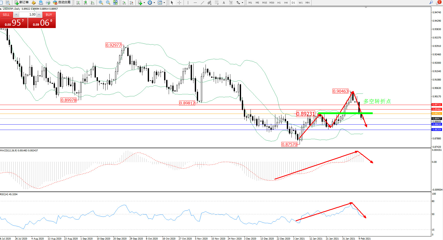 美元瑞郎USDCHF——日K线图显示: