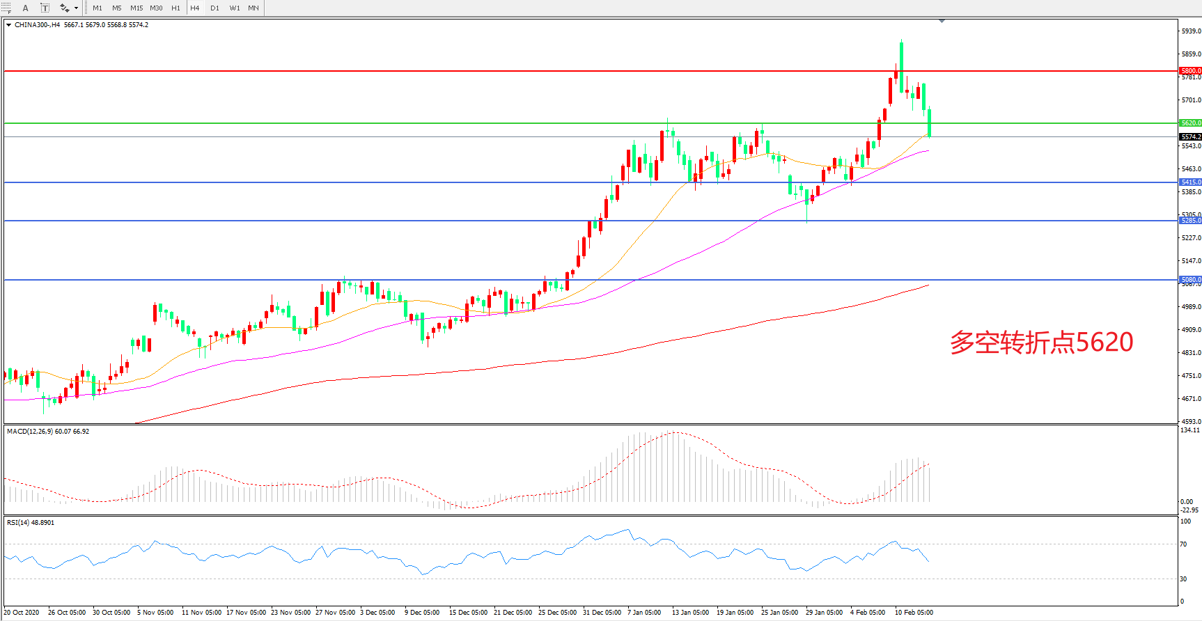 多空转折点:5620.00