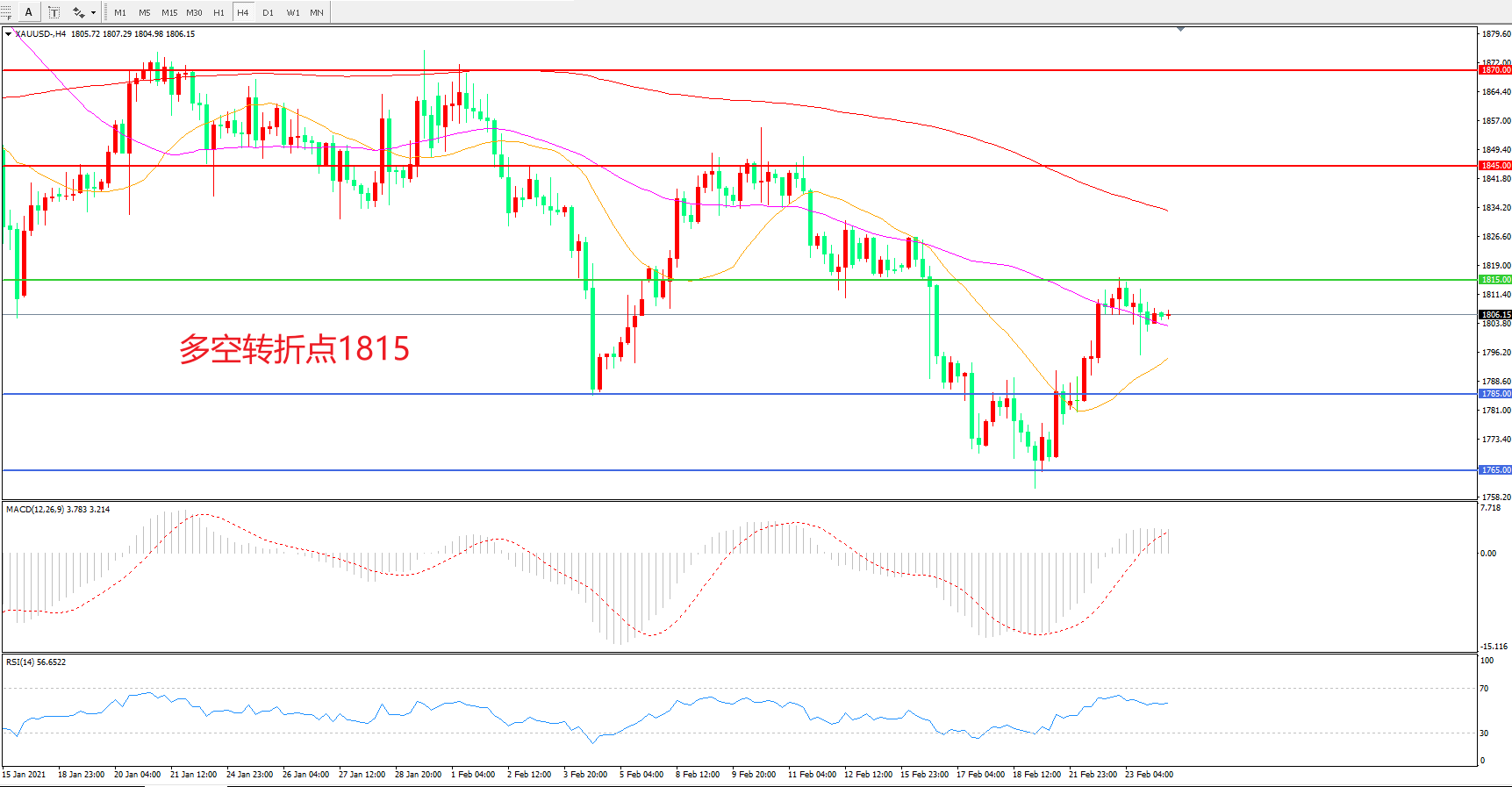 多空转折点:1815.00