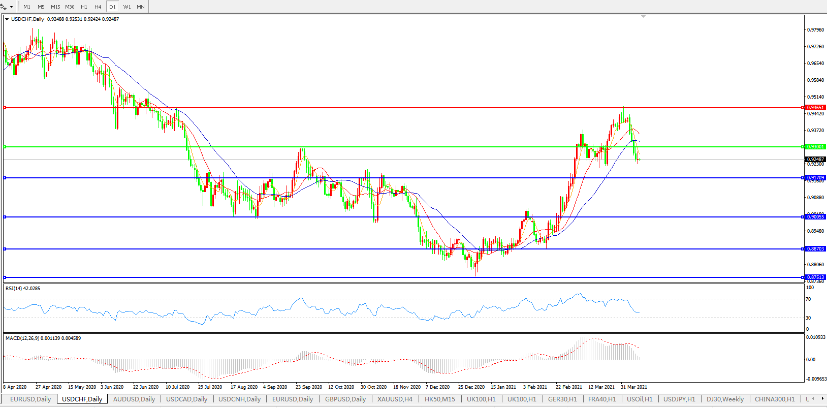 美元兑瑞郎USDCHF    日线图:
