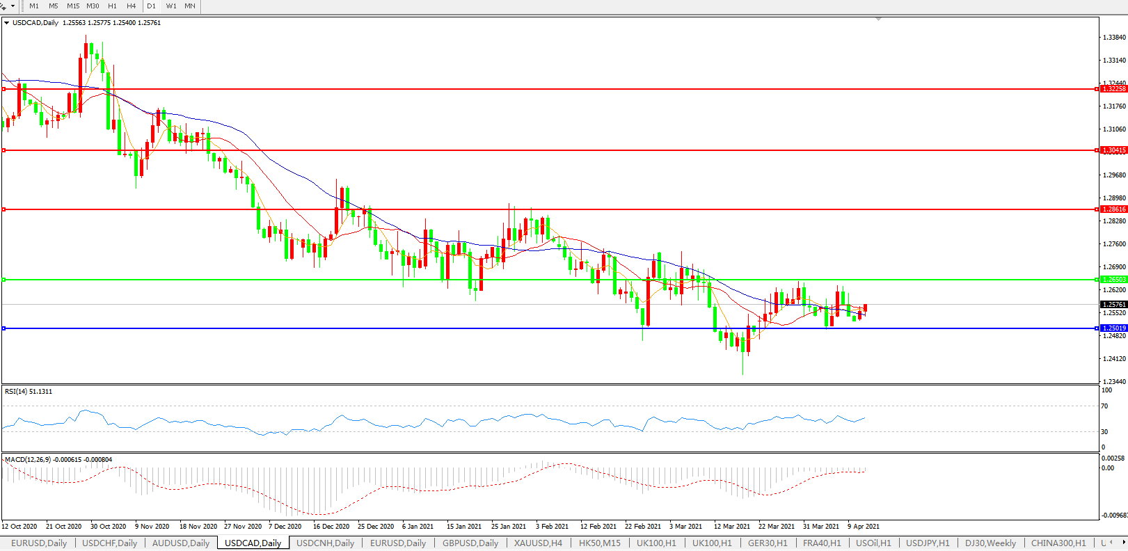 美元兑加元USDCAD 日线图: