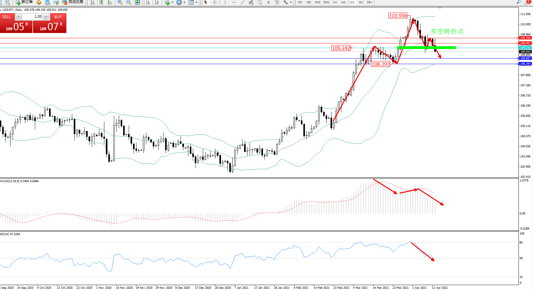 美元兑日圆高位下挫至109.055附近震荡,日本央行行长黑田东彦:日本央行将继续保持宽松政策。日本央行3月的评估使得宽松政策更加灵活和可持续。日本央行将通过收益率曲线控制(YCC)在很长一段时间内继续维持宽松的货币政策。个人认为日本可以在结构改革方面做得更好。政府成功部署了灵活的财政支出,这在支持日本经济方面发挥了关键作用。有市场传言美国经济增长加快和美国国债收益率上升将推高美元兑日元,但这很难说,因为外汇市场受各种因素影响。日本央行的政策评估使其能够根据需要灵活应对风险,比如加大ETF购买力度和深化负利率。更弱的日元会对日本产生积极影响。日本央行必须保持宽松的货币政策。更弱的日元提高了海外生产的利润。日本对出口的依赖程度低于德国。将继续关注经济宽松的影响和副作用。将适当实施货币政策,尽早实现2%的通胀目标。目前没有必要开始购买市政债券。日本央行持有34万亿至35万亿日元ETF。日本央行持有的ETF市场价值为40万亿日元。市场情绪因全球复苏预期而升温。疫苗的接种和美国的刺激方案都是市场情绪升温的原因。关注全球金融市场,如有必要将采取行动。正在关注各国央行对数字货币的行动。