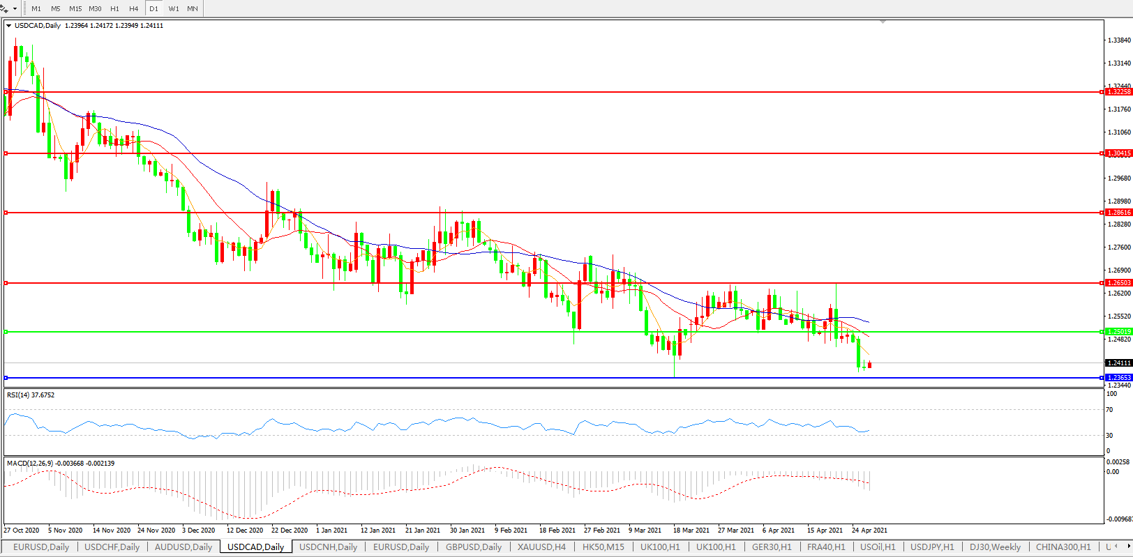 美元兑加元USDCAD    日线图: