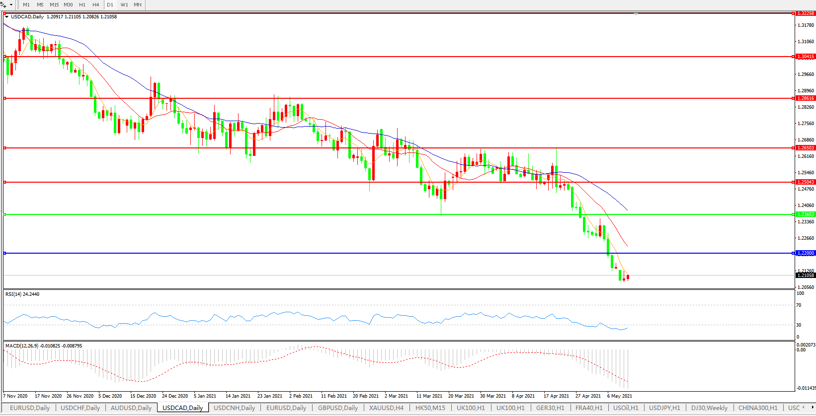 美元兑加元USDCAD    日线图: