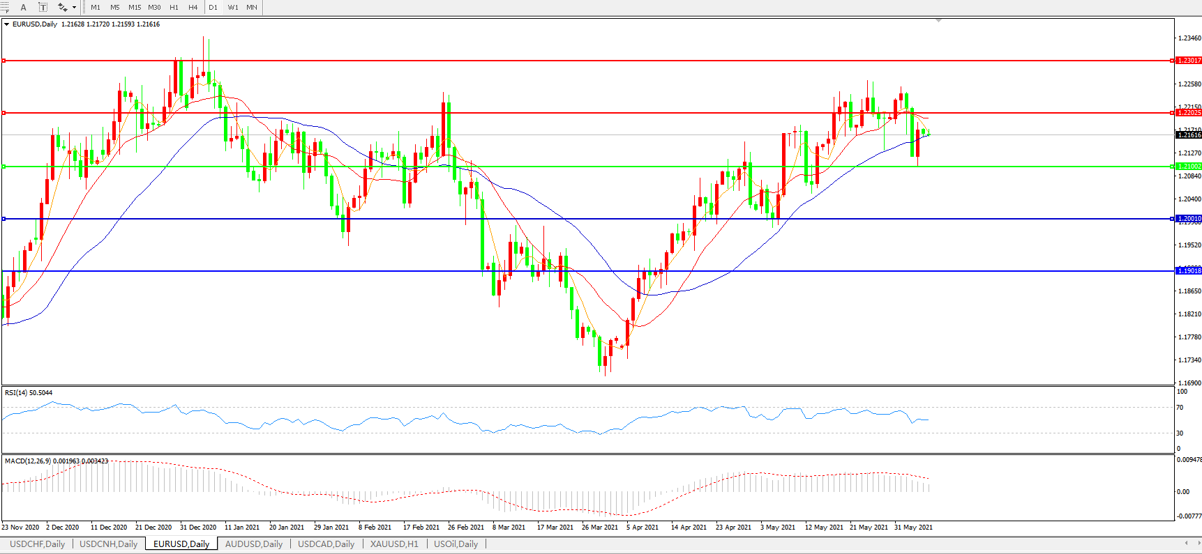 备选策略:1.2100下方看跌,目标1.2000、1.1900