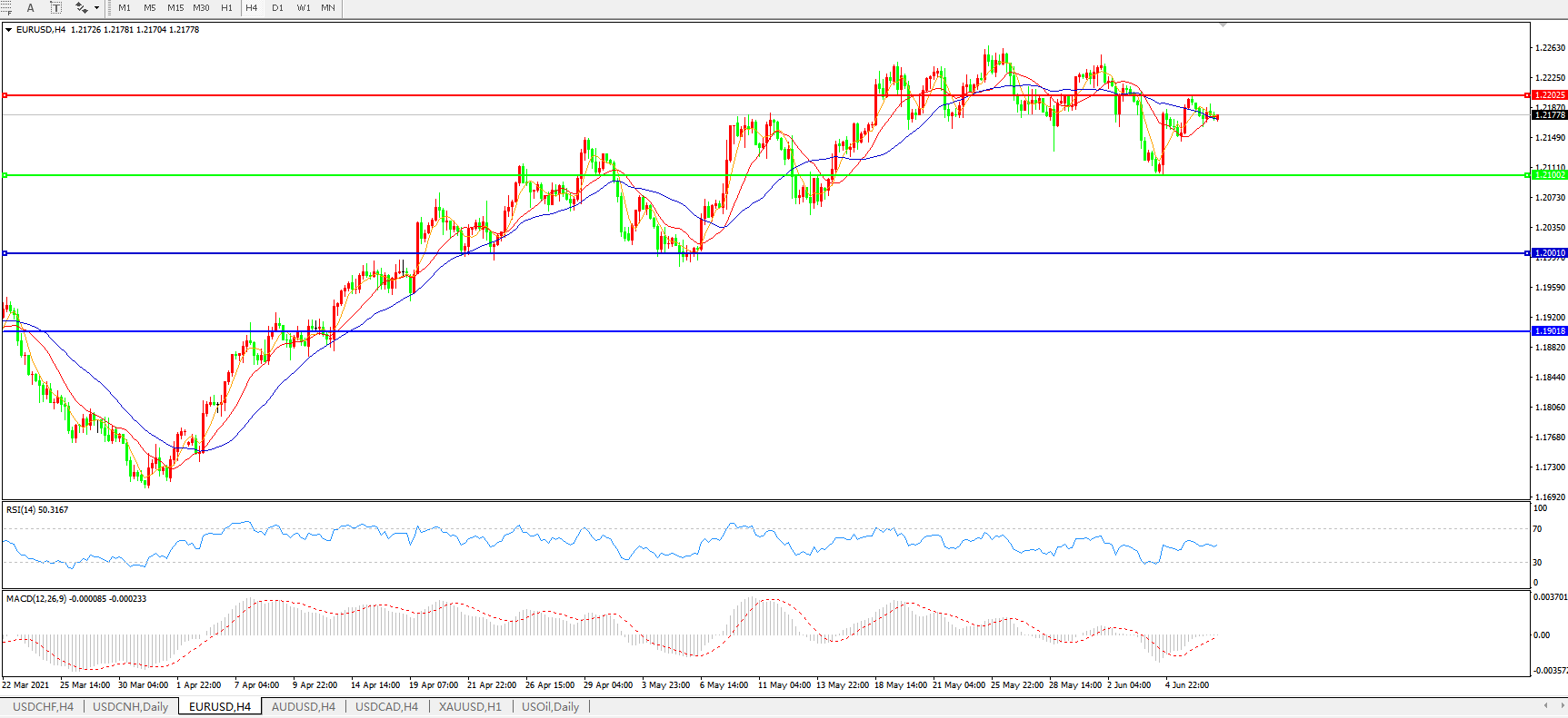 欧元兑美元EURUSD 4小时图: