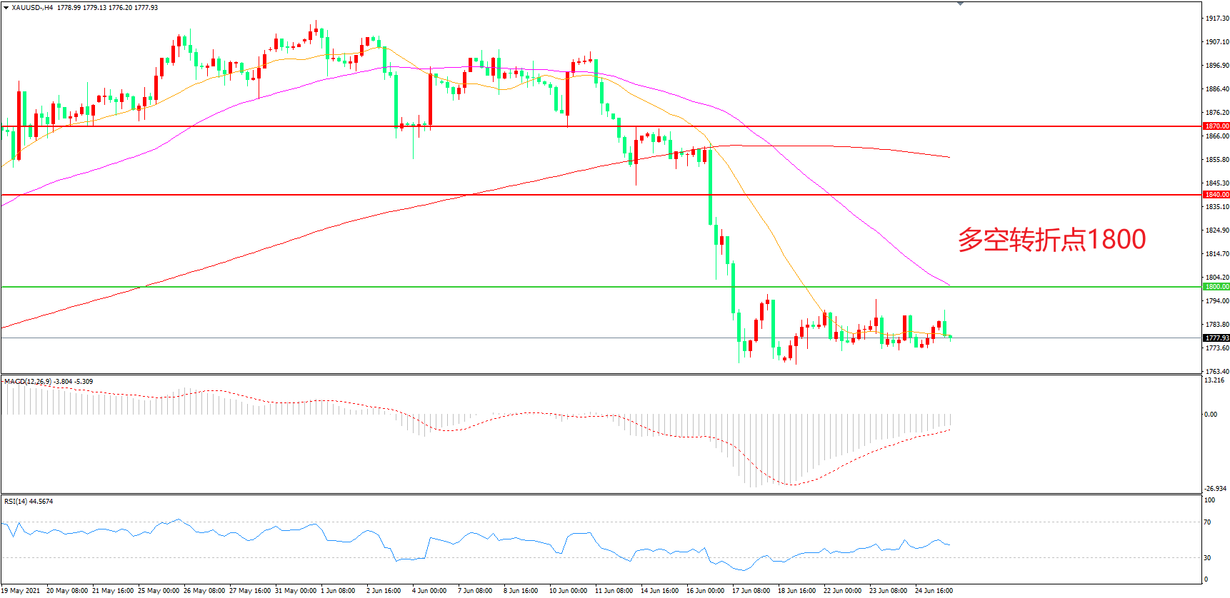 多空转折点:1800.00