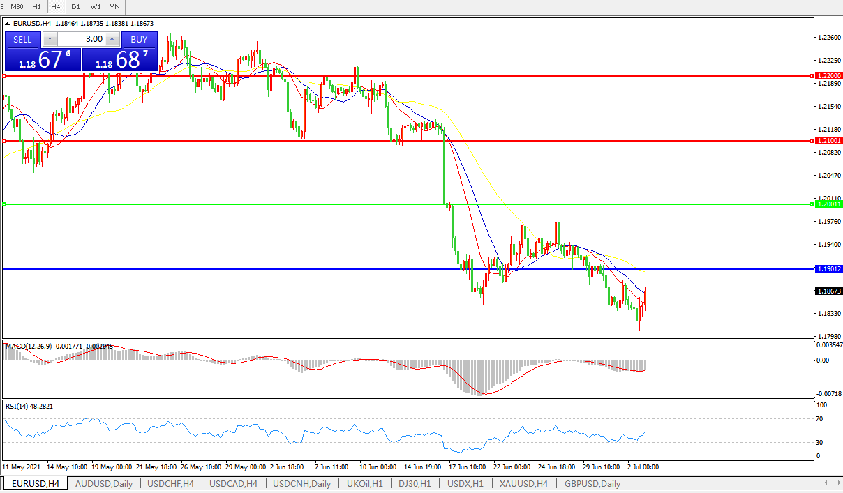 交易策略:1.2000下方看跌,目标1.1900、1.1800
