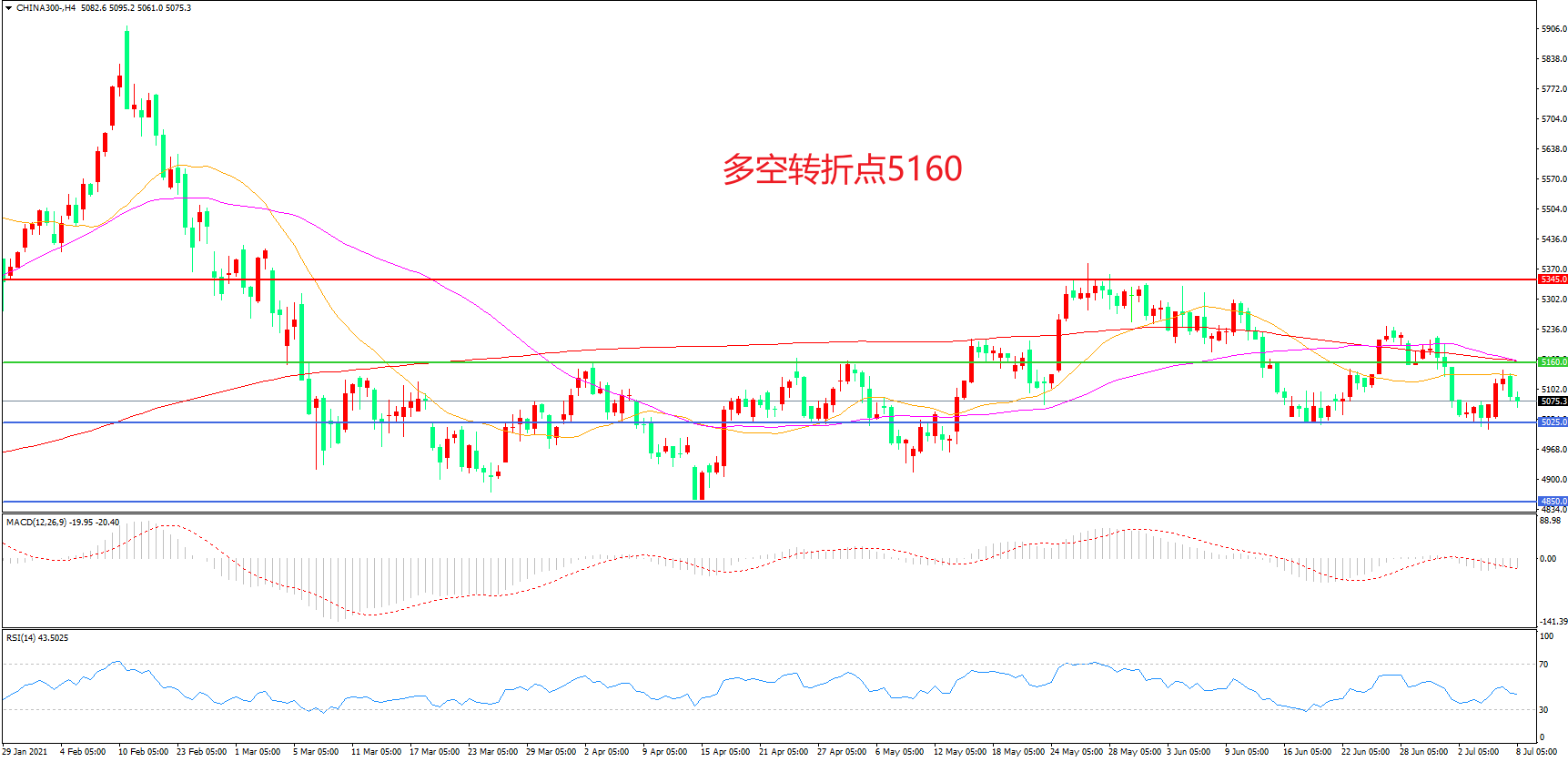 交易策略:在5160.00之下看跌,目标5025.00    4850.00