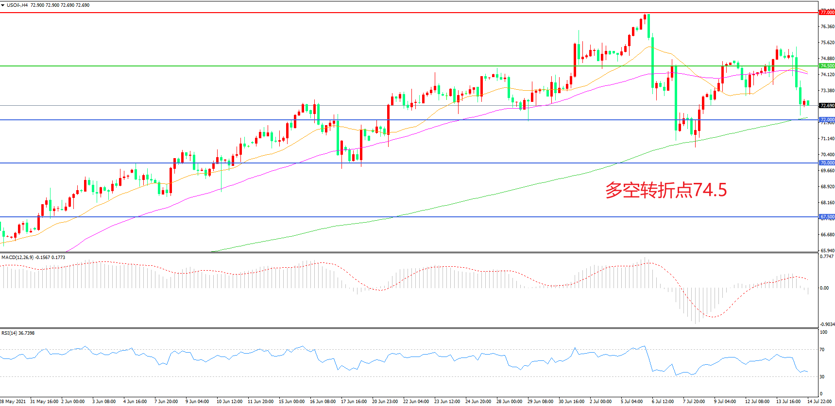 多空转折点:74.50