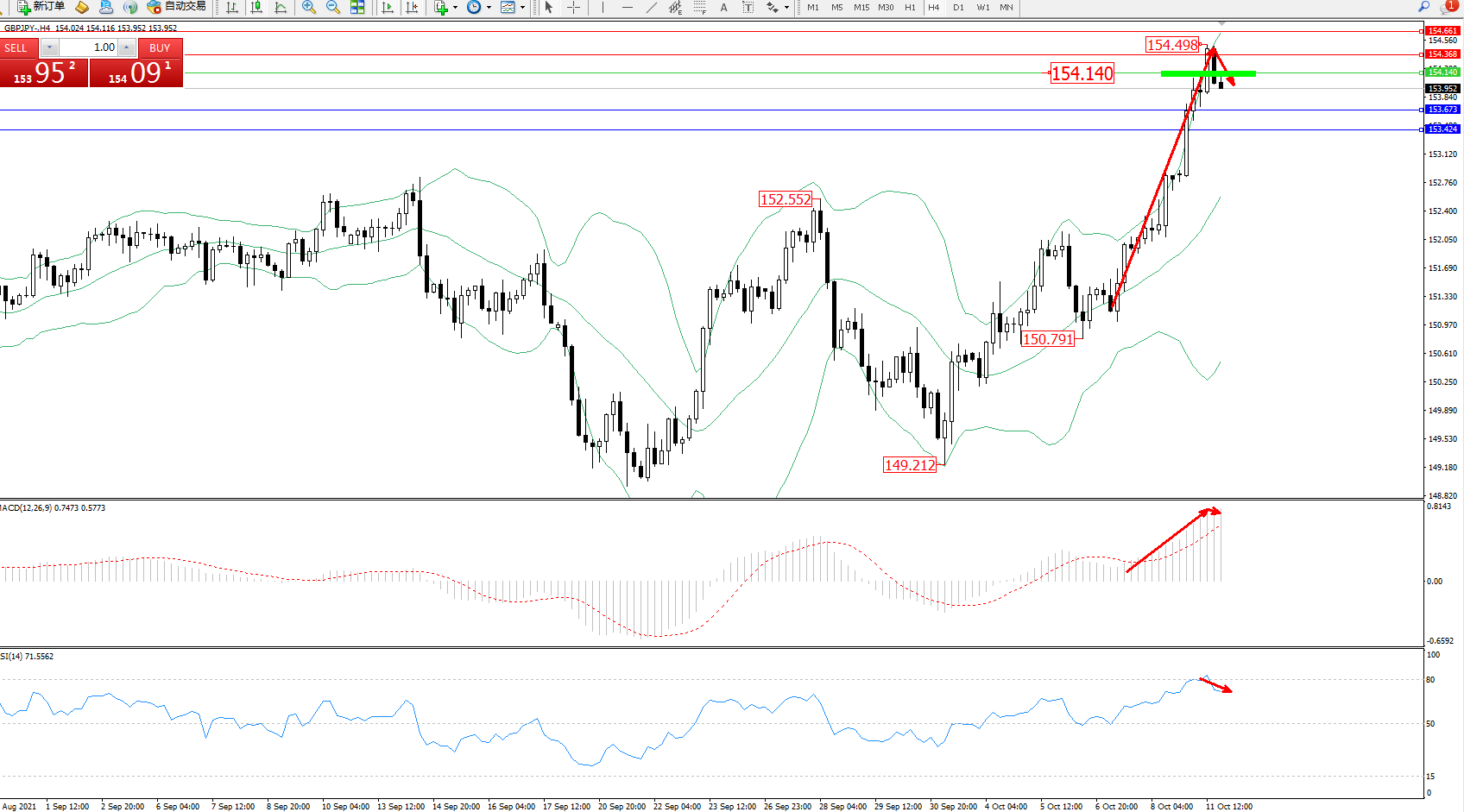 备选策略:154.140上方看涨,目标154.368、154.661