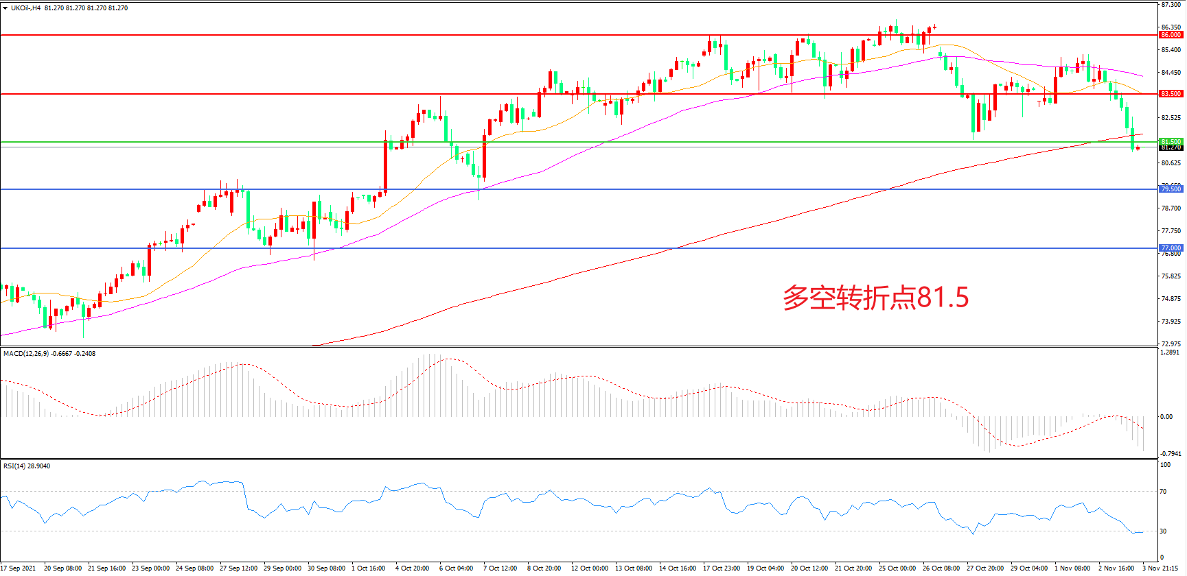 交易策略:在81.50之下看跌,目标79.50                 77.00