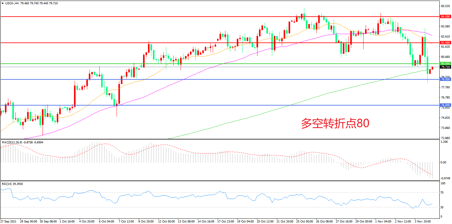 交易策略:在80.00之下看跌,目标78.50 76.00