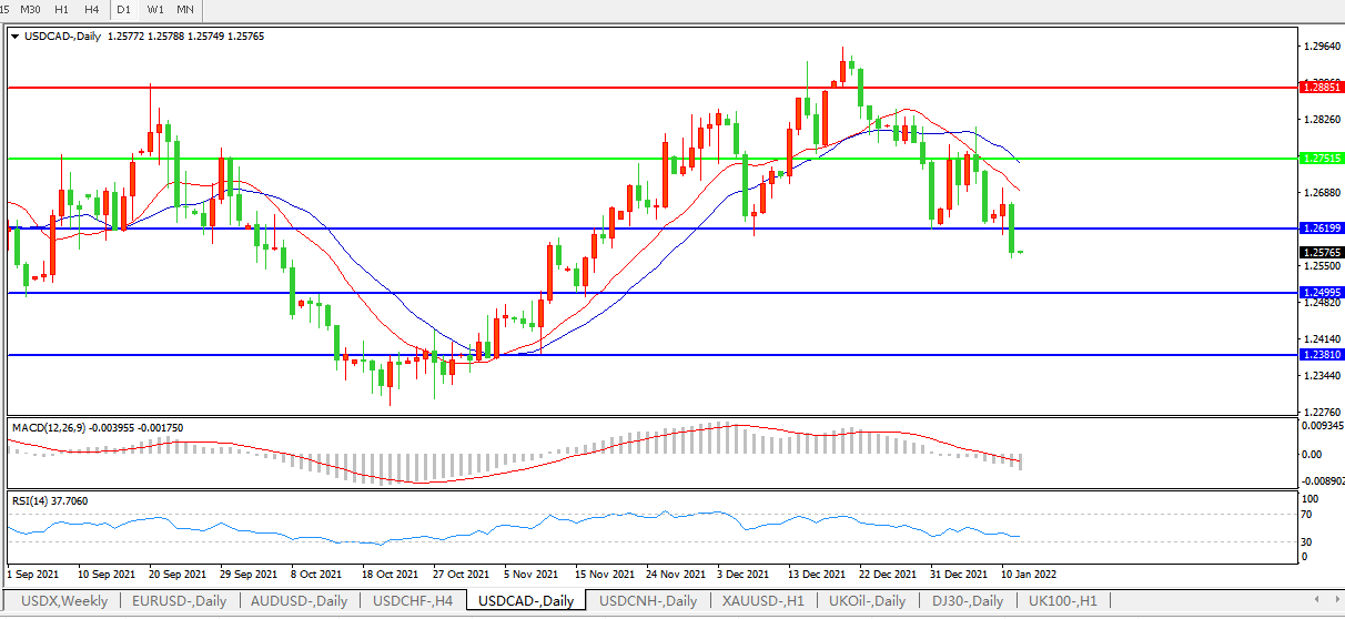 美元兑加元USDCAD 日线图: