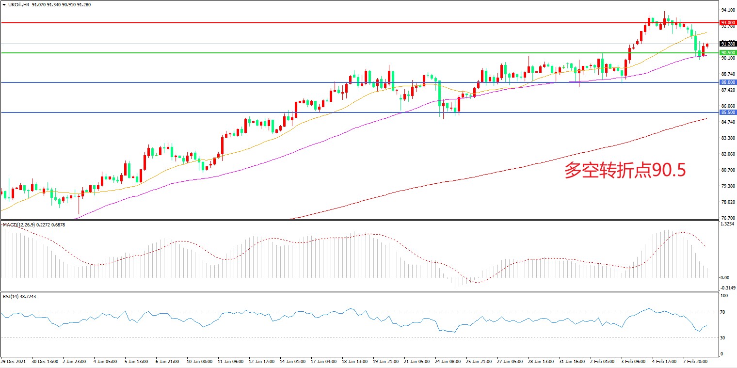交易策略:在90.50之上看涨,目标93.00                96.00