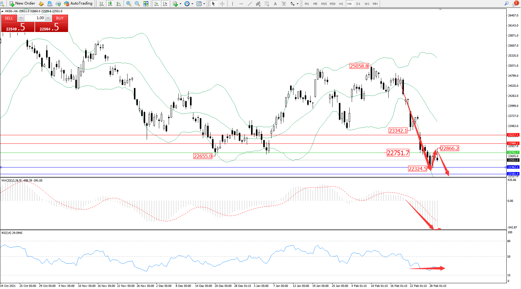 技术点评:空头动力延续布林带指标下轨附近持续震荡下挫,低位抵达22324附近节点后得到支撑短暂整理,短期维持低位弱势徘徊中,空头动力有继续向下移动态势,布林带指标呈张口走势后开始有缓慢收口迹象,MACD指标处于空头区域低位整理平移,RSI指标处于空头区域维持整理平移中;