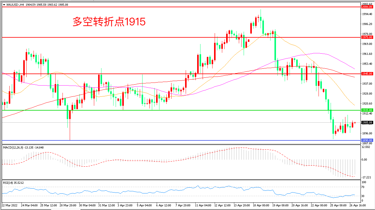 交易策略:在1915.00之下看跌,目标1890.00 1865.00