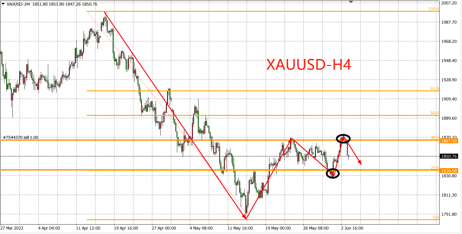 备选策略:在1836.00之下看跌,目标1820.00          1810.00