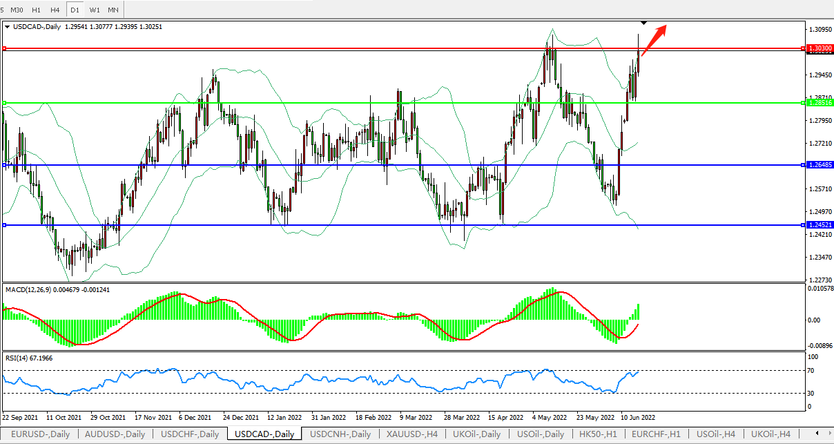 美元兑加元USDCAD 日线图: