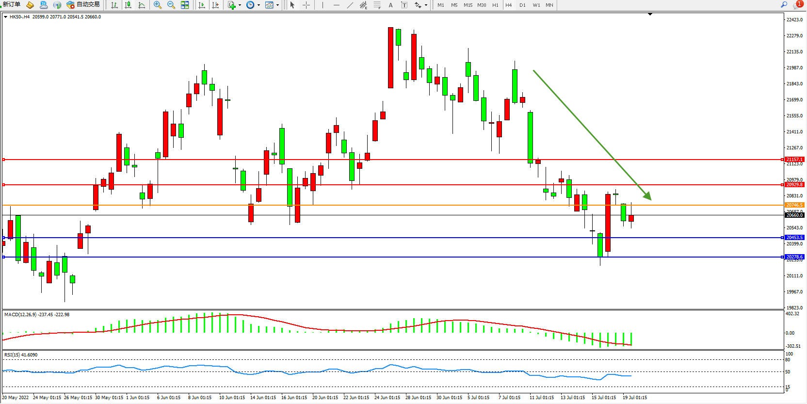 恒指HK50 4小时图