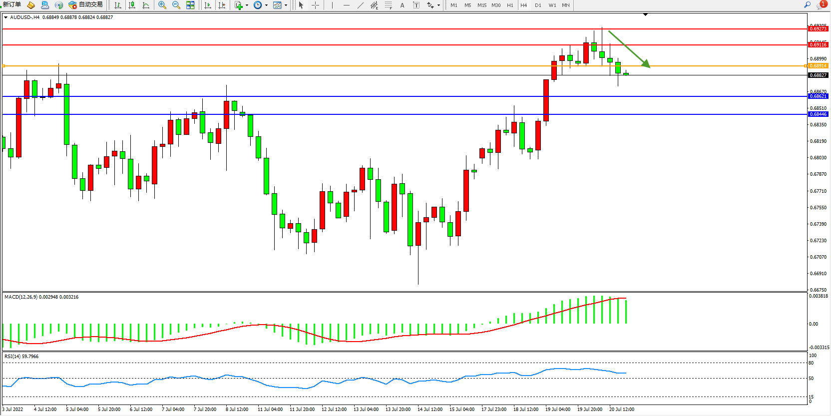 交易策略:0.68914下方看跌,目标0.68621、0.68446