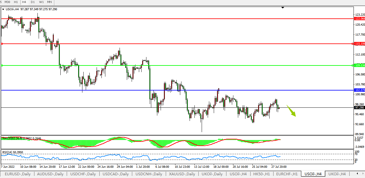 美国原油USOil 4小时图