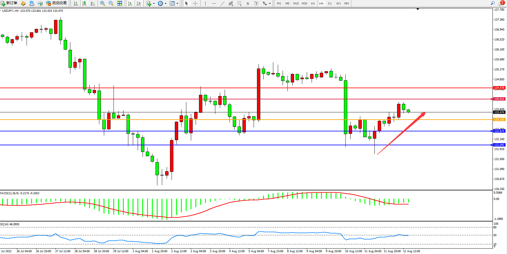 压制位:134.015、134.478