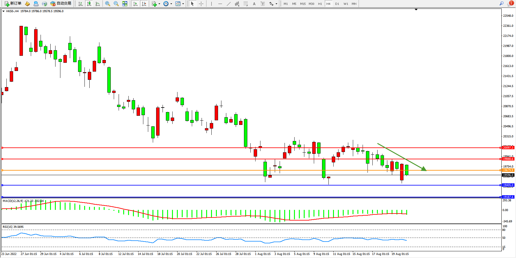 恒指HK50 4小时图