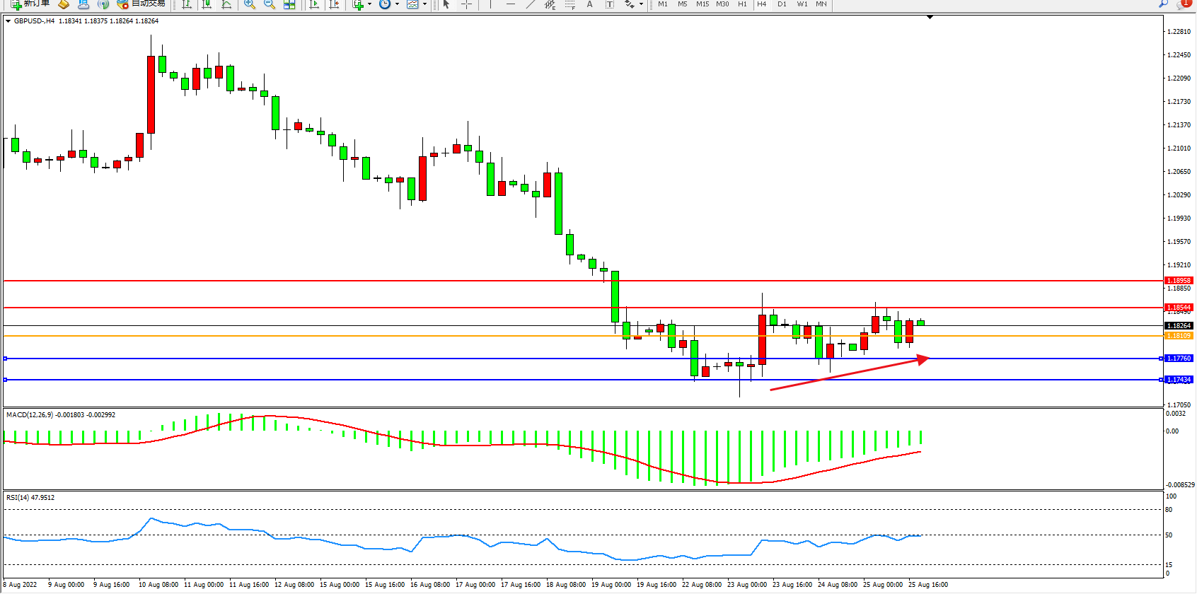 交易策略:1.18109上方看涨,目标1.18544、1.18958