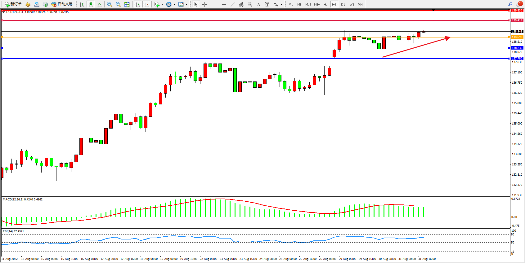 交易策略:138.690上方看涨,目标139.413、139.830