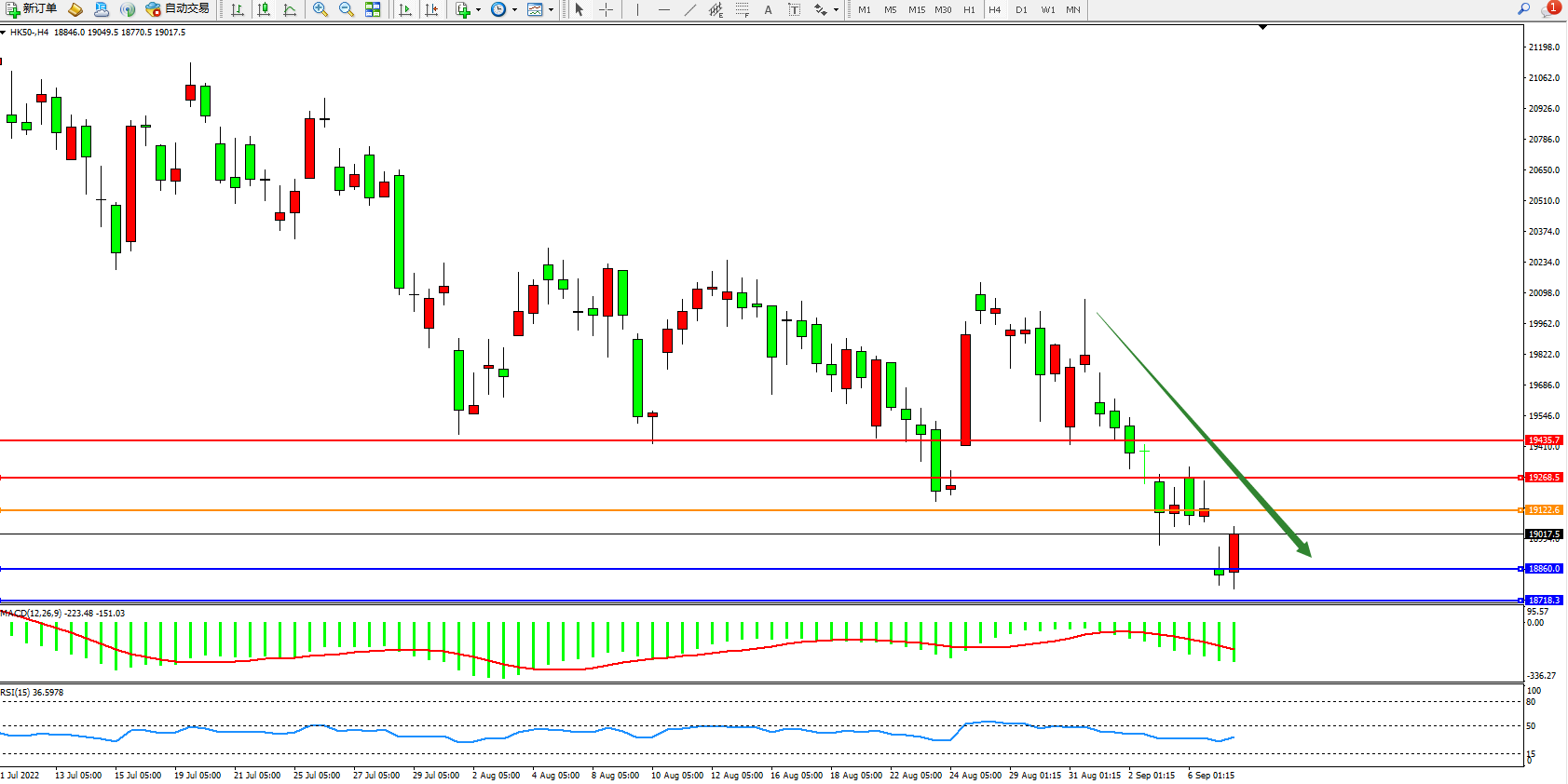 恒指HK50 4小时图