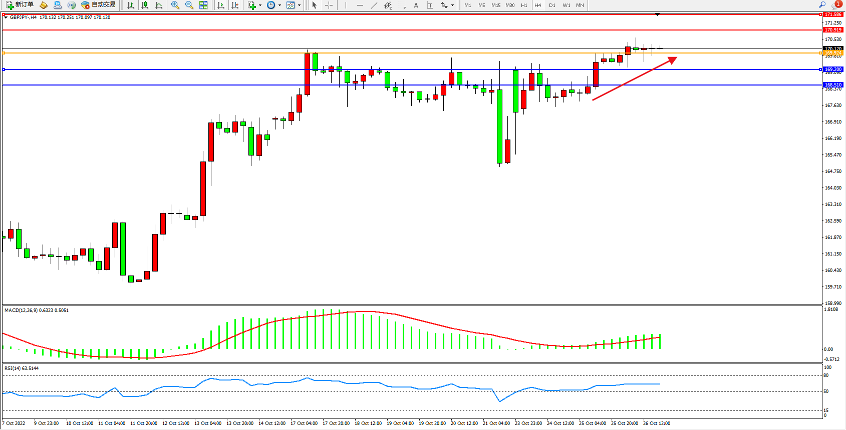 交易策略:169.924上方看涨,目标170.919、171.586