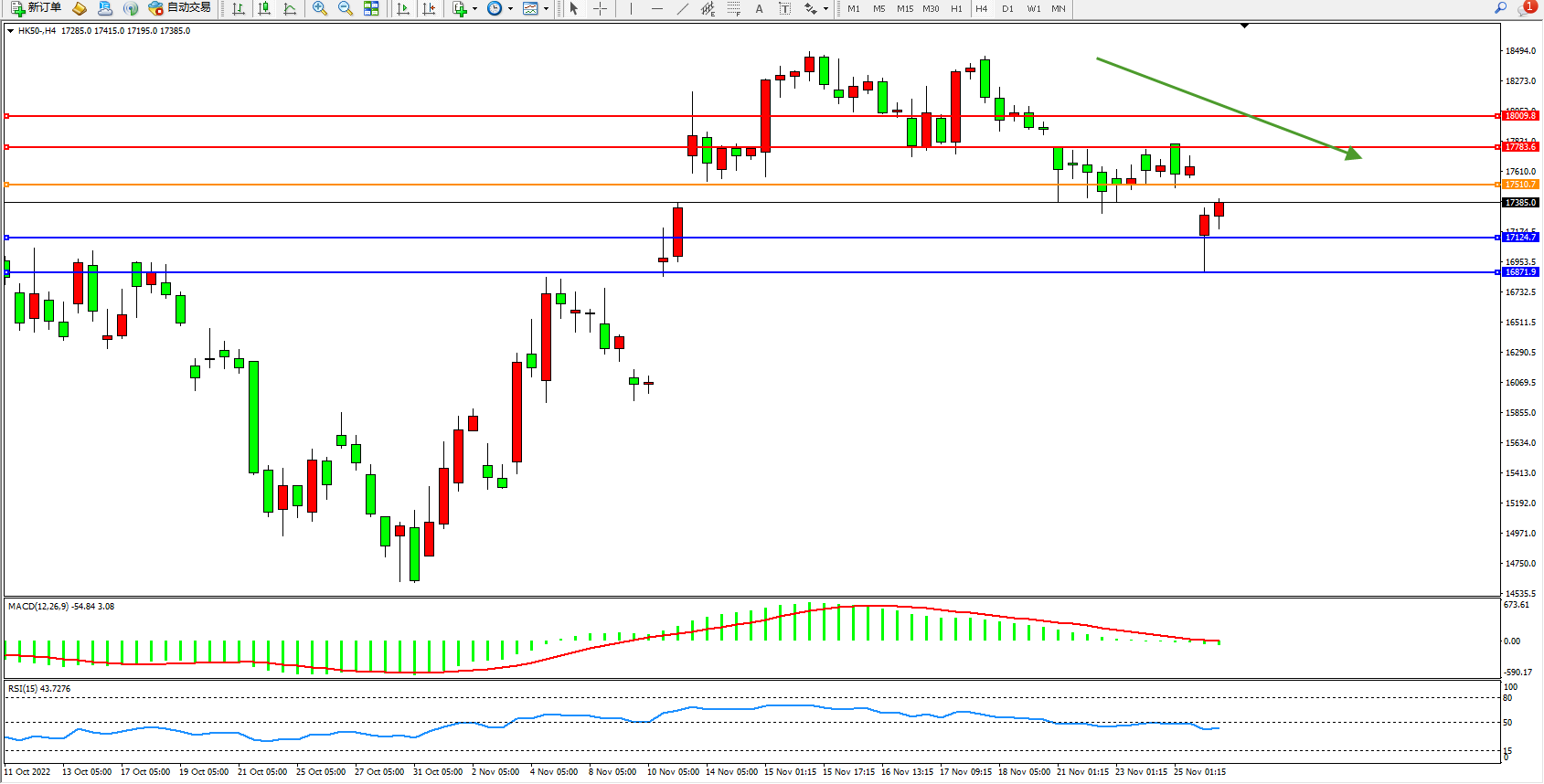 恒指HK50 4小时图