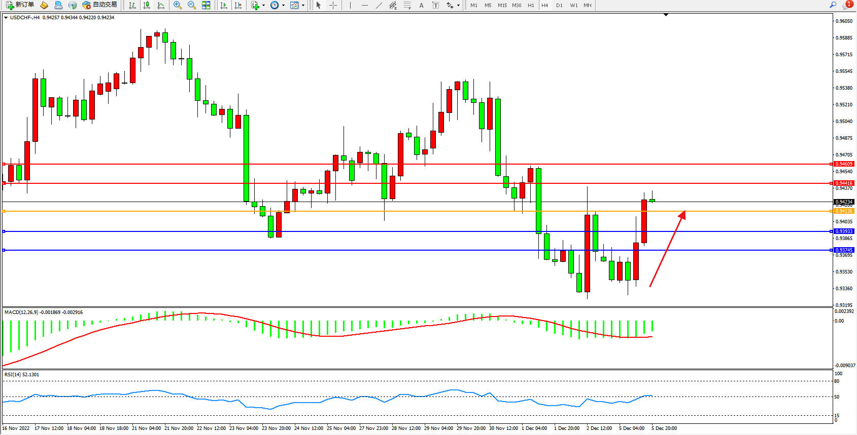 美元瑞郎USDCHF——4小时K线图显示: