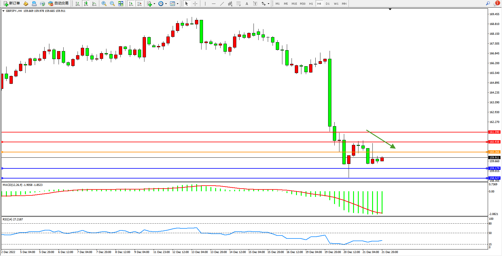 英镑兑日圆维持159.911附近震荡,英国15家火车公司的司机将于2023年1月5日罢工。此次罢工是目前因薪酬而引发的争端的一部分。罢工行动将使“受影响线路的服务中断”。在通胀和生活成本飙升的背景下,其他行业也因为要求提高薪酬而宣布举行波及面更广的罢工。
