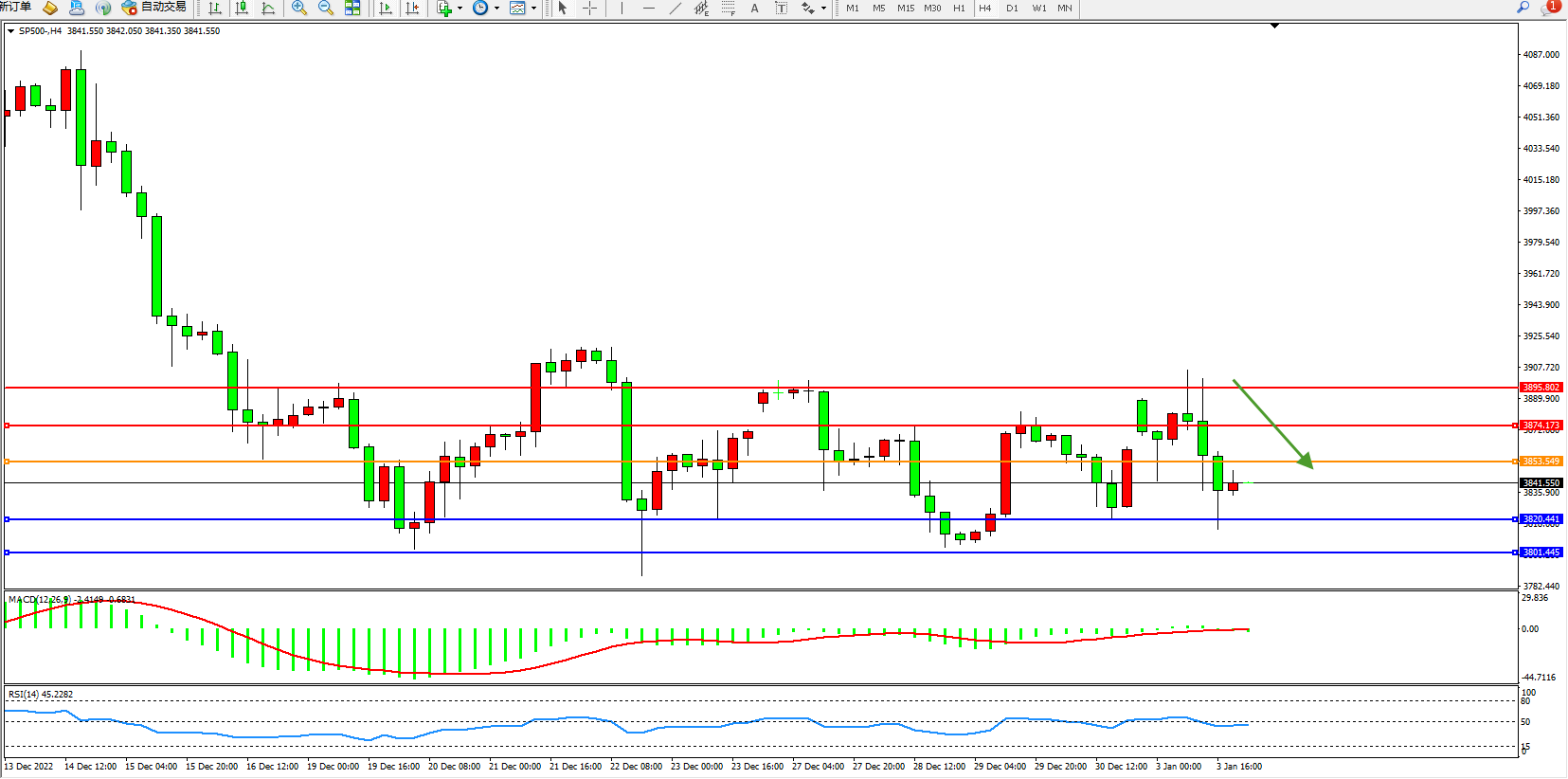 标普SP500——4小时K线图显示: