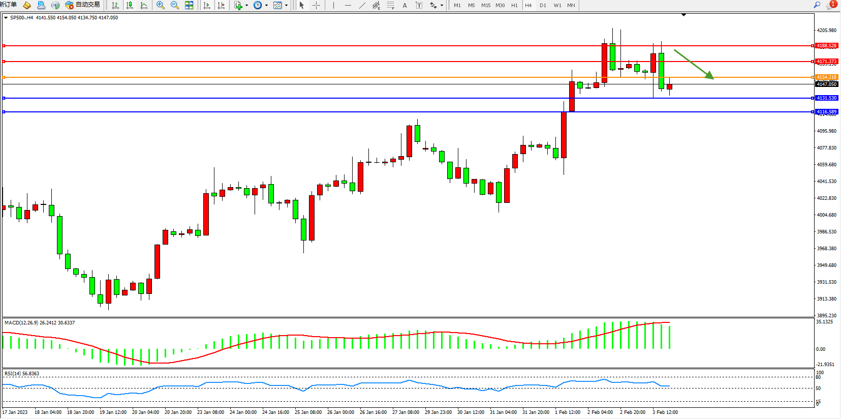 标普SP500——4小时K线图显示: