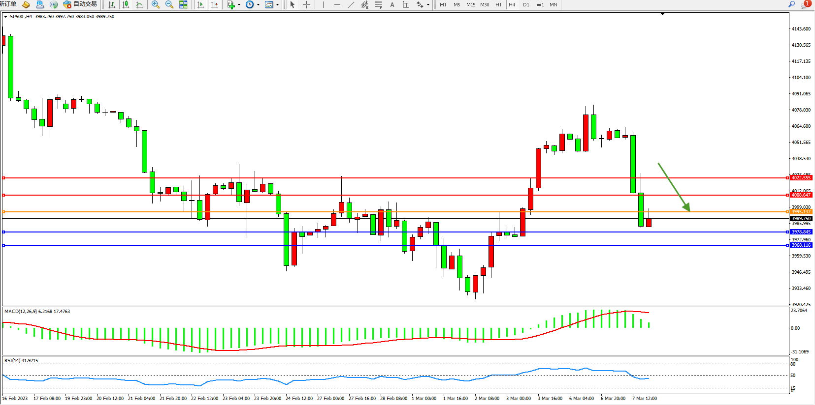 标普SP500——4小时K线图显示:
