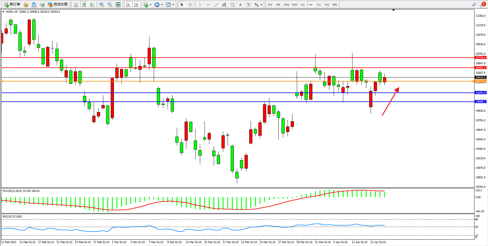 恒指HK50 4小时图