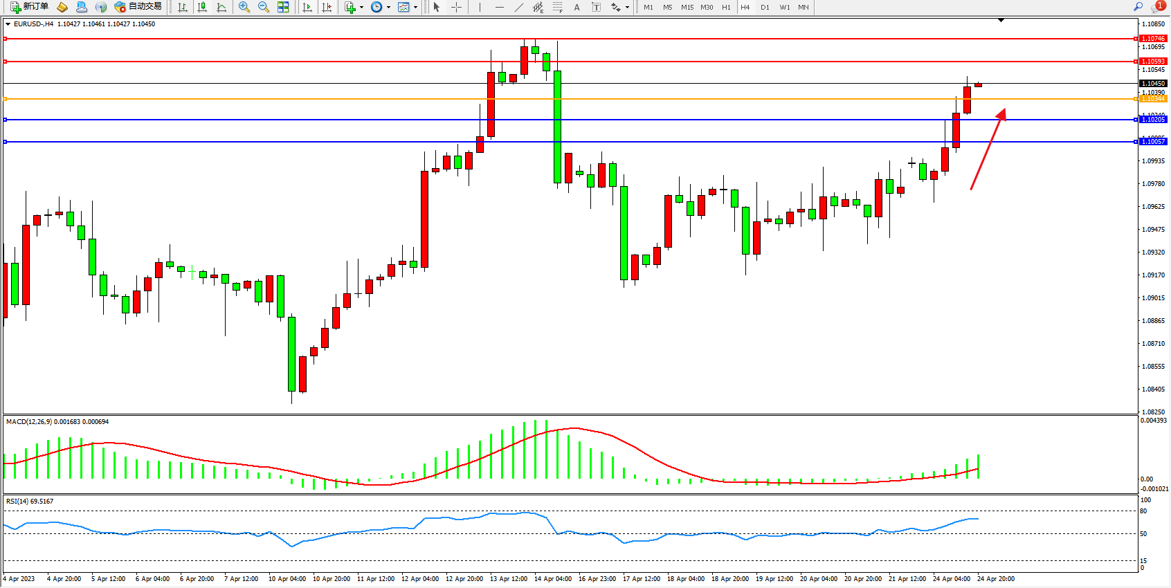 阻力位:1.10593 1.10746